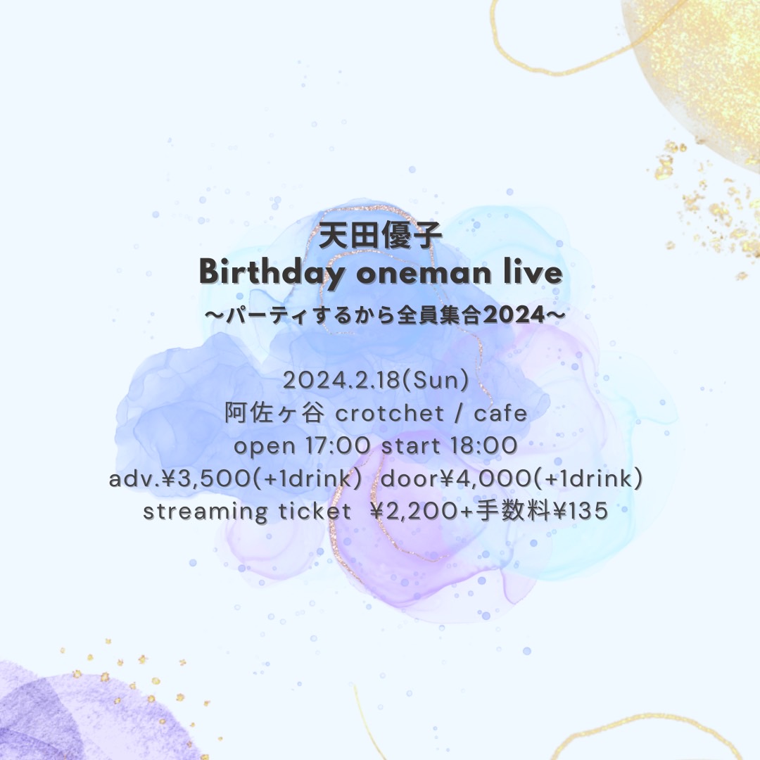天田優子 Birthday ONEMAN LIVE 〜パーティーするから全員集合2024〜 □会場 crotchet / cafe(東京・阿佐ヶ谷) 東京都杉並区本天沼1-1-13 ネコビル 1F &nbs […]